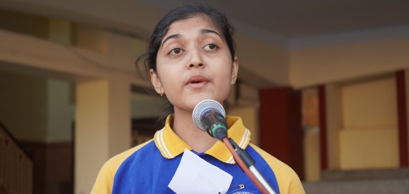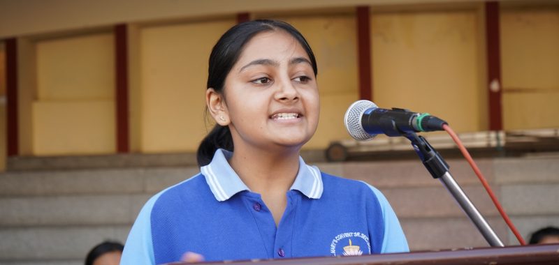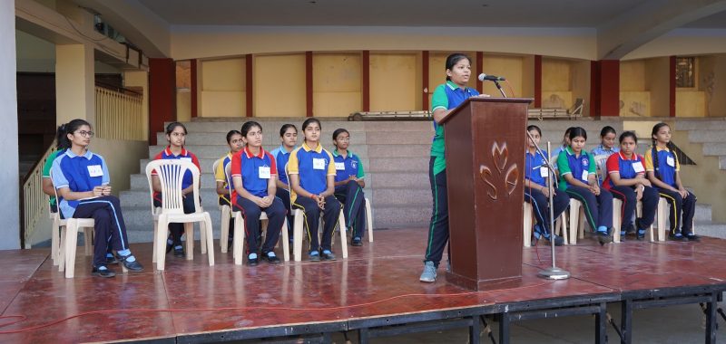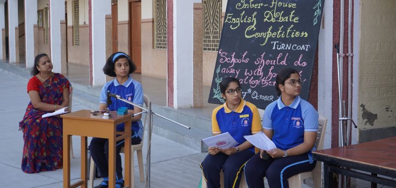 An Inter-House English Debate Competition (a turncoat) was organized on 7th October 2023. The competition was open to students from classes IX to XII. Four participants from each House presented their views in favour of and against the motion for the day – Schools should do away with homework altogether. A total of seventeen debaters kept the audience spell bound with their contentions. They debated to and fro making it difficult for the judges to pick the top three speakers. The time allotted to each speaker was 3 minutes to prove their viewpoint. The jury listened carefully and judged the speakers on the following criterion: Content, Delivery, Language, Smoothness in Turncoat and Overall presentation. After the last speaker had shared her views, two of the judges Ma’am Jasjeet and Ma’am Rashmi Solomon were invited to speak of their experiences. Kashish Ramchandani and Bhumika Aswani from Class XII Commerce presented the song ‘Memories’ in their melodious voices, which Rupal Jain accompanied them beautifully on the guitar. While the results were awaited, Sr. Anusha, the Principal addressed the attentive gathering and opened the floor for an open discussion between the teachers and students on the topic. Sister later brought the debating event to a close by declaring the results amidst much excitement and cheering. Sr. Anusha also thanked Ma’am Elvira and her team for the successful organization of an interesting debate. At the end the comperes – Anjali Lalwani and Labhanshi Bansal thanked everyone present for their involvement and enthusiasm throughout.